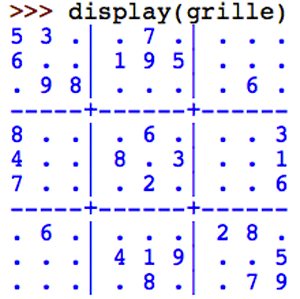 display(list grid) --> None affichera la grille grid selon le format ci-dessous.