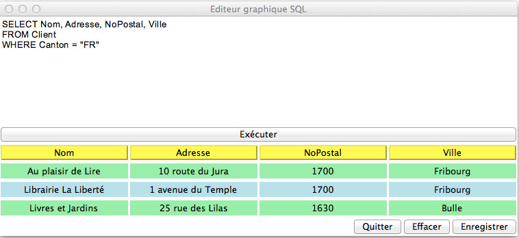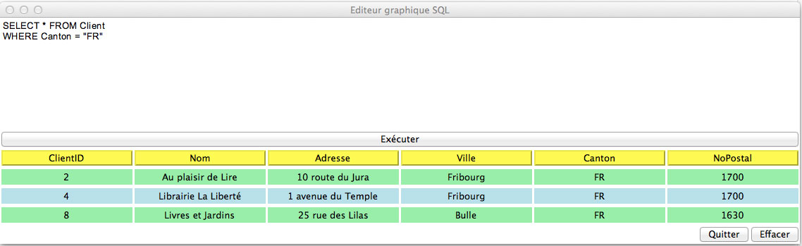 En lançant le script ci-dessus (téléchargeable ici ), il est possible d'interroger la base de données directement à l'aide du langage SQL:
