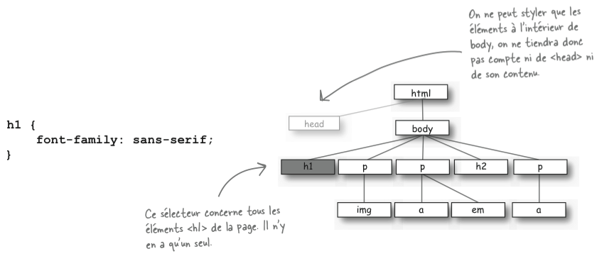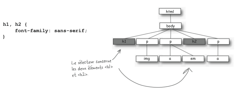 En réumé, les sélecteurs servent à indiquer quels éléments seront concernés par la règle de style: