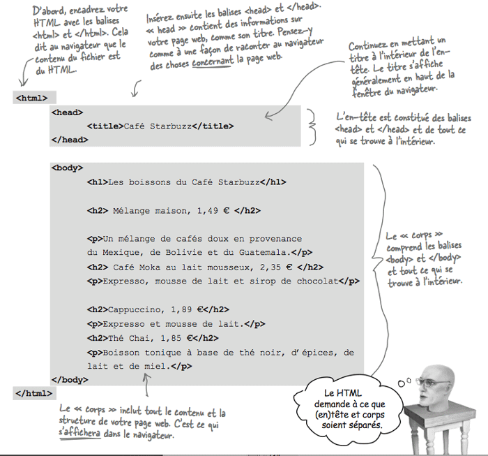 Appliquée à votre première page Web, cette structure aura l'allure suivante et sera interprétée par le navigateur comme une page Web standard: