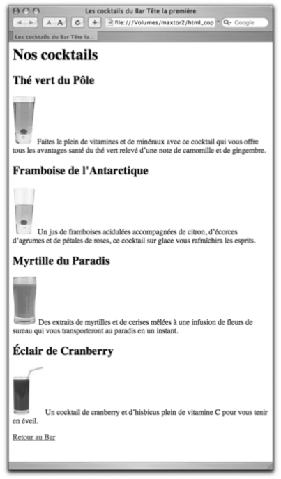 Interprétation du fichier «cocktail.html» par un navigateur web.