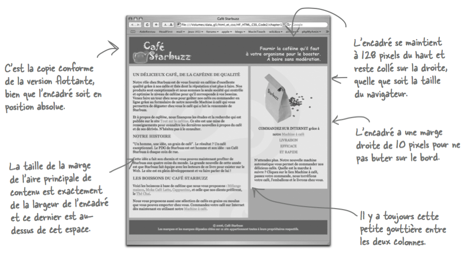 Nous allons créer pour Starbuzz une page sur deux colonnes en recourant au positionnement absolu. Voici comment procéder: