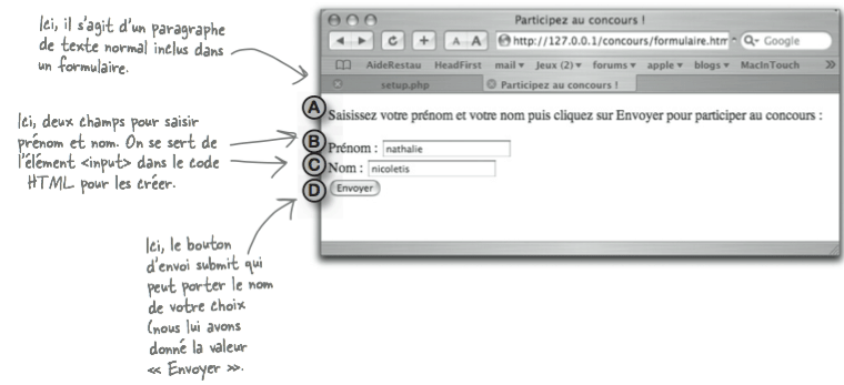 Un formulaire n'est qu'un morceau de HTML formé de quelques éléments spécifiques qu'il faut connaître. Du côté navigateur, un formulaire fonctionne comme suit: